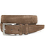 Italian Sueded Calfskin. Aniline Leather Lined. Padded and Matching Hand stitched. Satin Nickel Finished Buckle.
