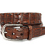 Genuine Hornback Crocodile. Glove Leather Lined. Unstitched Edge. With Hand Hammered Satin Nickel Finished Buckle. Buckle is Hand Sewn on.