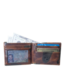 A subtle camouflage motif distinguishes Will Leather's smooth glazed Italian calfskin leather. The smaller pores found in calfskin leather make it even more water resistant, and of course soft and supple to the touch. A double billfold with 5 card slots, a metal mesh ID slot, and two lined additional pockets tucked beneath these slots.