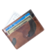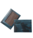 A subtle camouflage motif distinguishes this smooth glazed Italian calfskin leather. The smaller pores found in calfskin leather make it even more water resistant, and of course soft and supple to the touch. This streamlined design offers three card slots with a metal mesh ID window on the back.